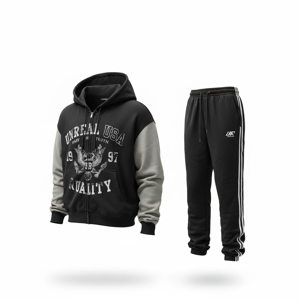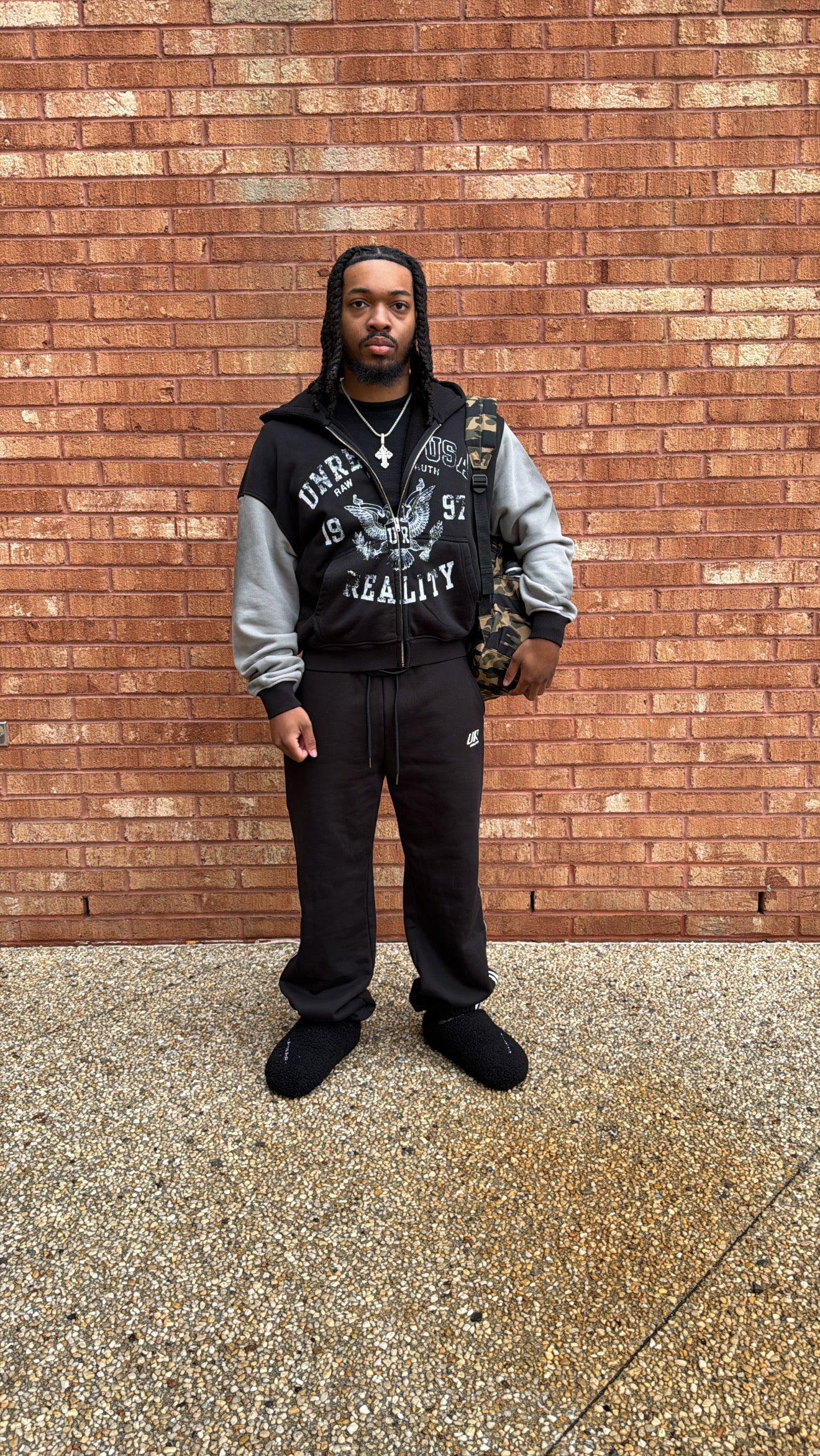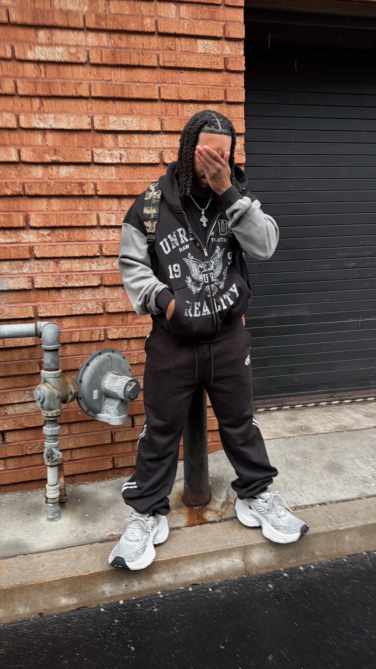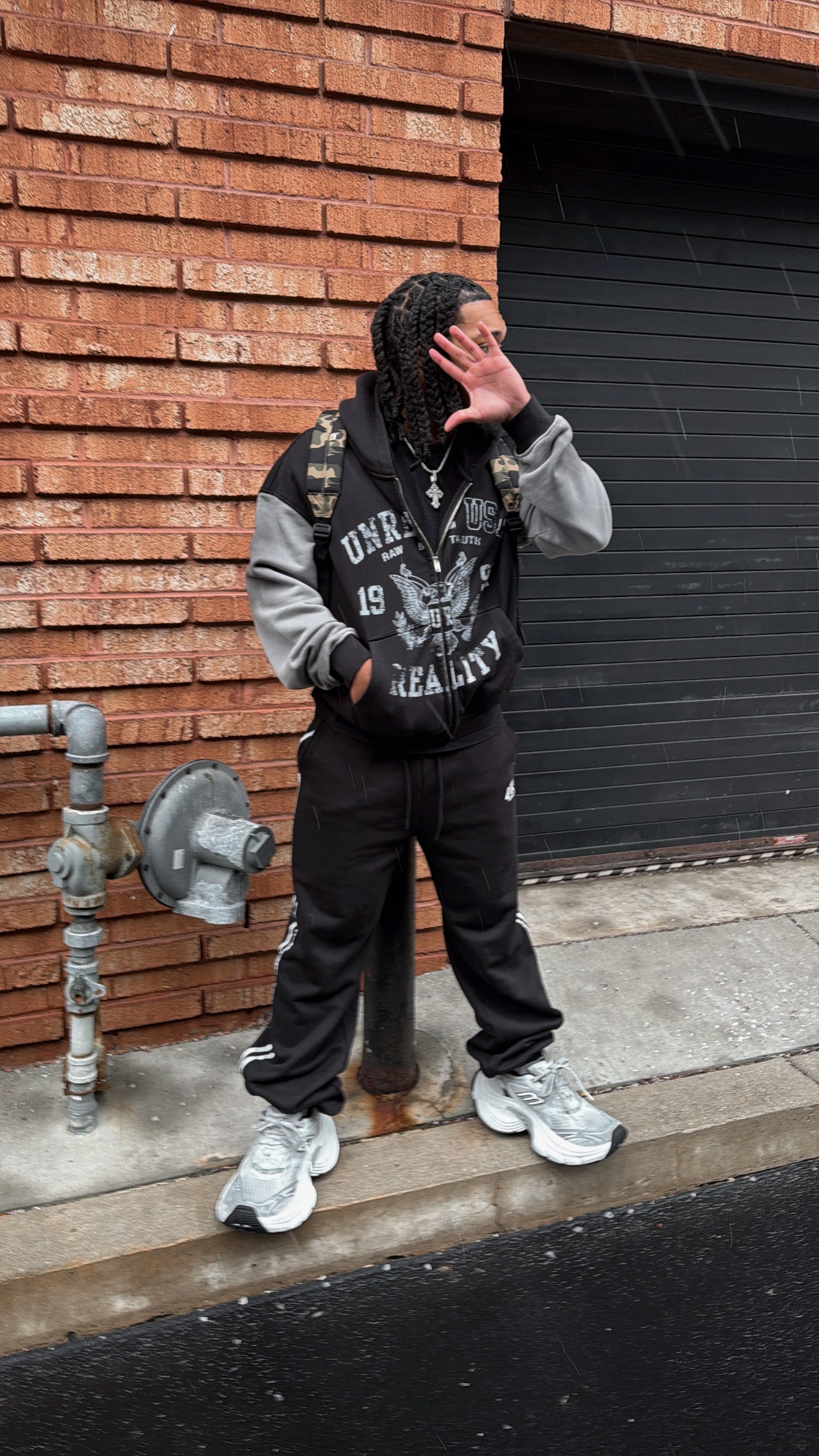 This sweatsuit was made for everyday wear without sacrificing style. The Unstitched Realities sweatsuit is comfortable, heavyweight, and built to last. The fabric feels soft but structured, giving you that premium feel you want in a set you can wear all day.